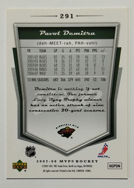 2007-08 Upper Deck MVP #291 Pavol Demitra