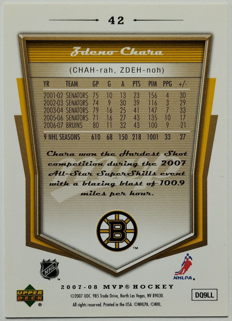 2007-08 Upper Deck MVP Gold Scripts #42 Zdeno Chára SN 093/100