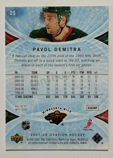 2007-08 Upper Deck Ovation #25 Pavol Demitra