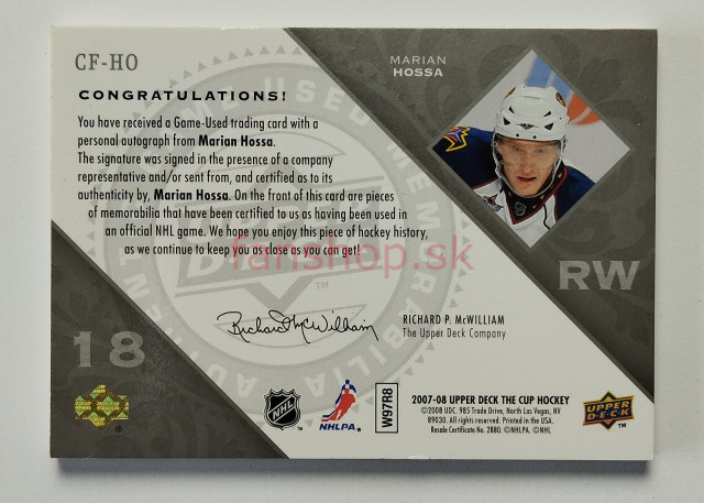 2007-08 Upper Deck The Cup Foundation Jerseys Autograph #CF-HO Marián Hossa SN 01/10