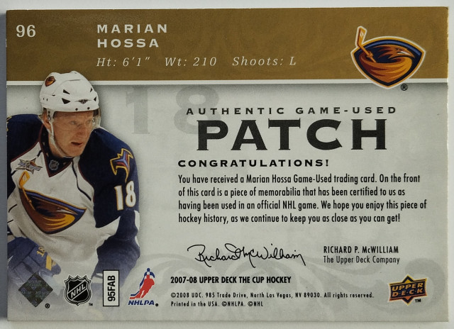 2007-08 Upper Deck The Cup Gold Patches #96 Marián Hossa SN 01/10