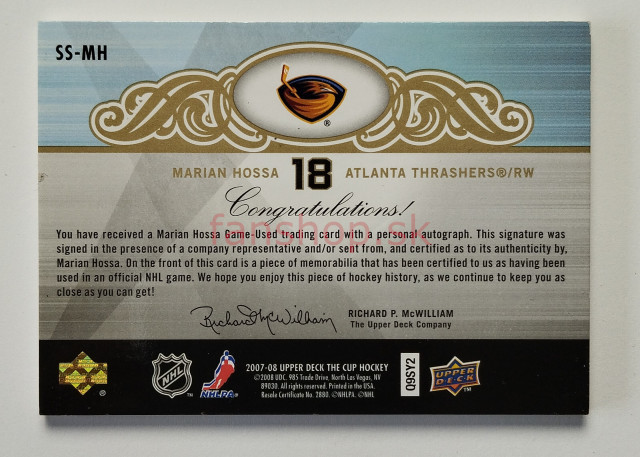 2007-08 Upper Deck The Cup Scripted Swatches #SS-MH Marián Hossa SN 23/25