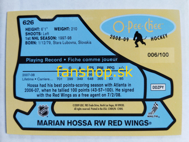 2008-09 O-Pee-Chee 1979-80 Retro Rainbow #626 Marián Hossa SN 006/100