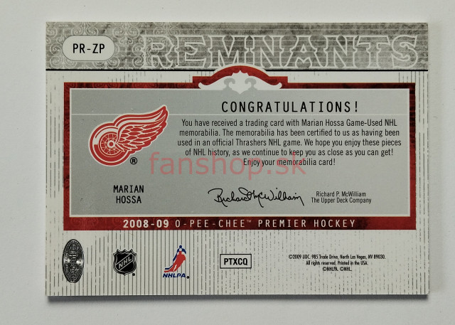 2008-09 O-Pee-Chee Premier Remnants Quads #PR-ZP Marián Hossa SN 18/25