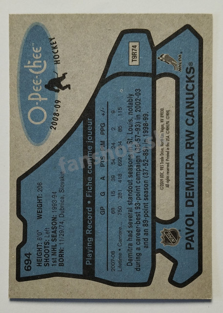 2008-09 O-Pee-Chee Retro #694 Pavol Demitra