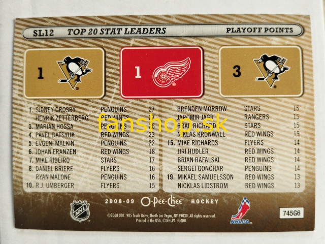 2008-09 O-Pee-Chee Stat Leaders #SL12 Crosby / Zetterberg / Hossa