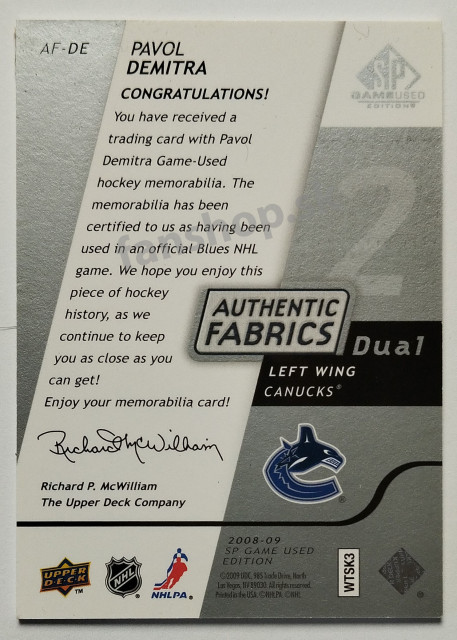 2008-09 SP Game Used Authentic Fabrics Dual #AF-DE Pavol Demitra