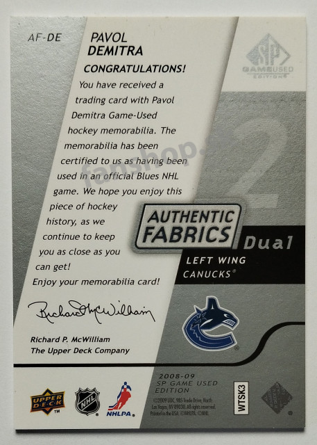 2008-09 SP Game Used Authentic Fabrics Dual #AF-DE Pavol Demitra