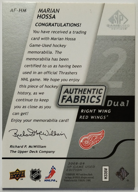 2008-09 SP Game Used Authentic Fabrics Dual #AF-HM Marián Hossa