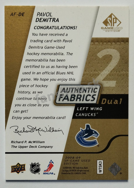 2008-09 SP Game Used Authentic Fabrics Dual Gold #AF-DE Pavol Demitra SN 42/50