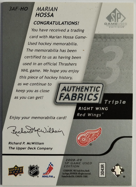 2008-09 SP Game Used Authentic Fabrics Triple #3AF-HO Marián Hossa