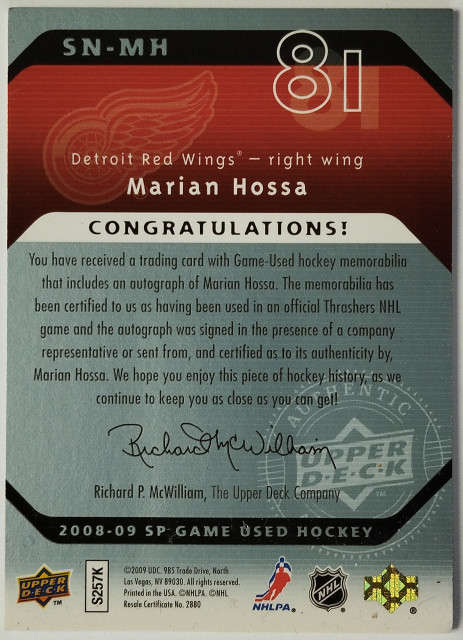 2008-09 SP Game Used SIGnificant Numbers #SN-MH Marián Hossa SN 61/81