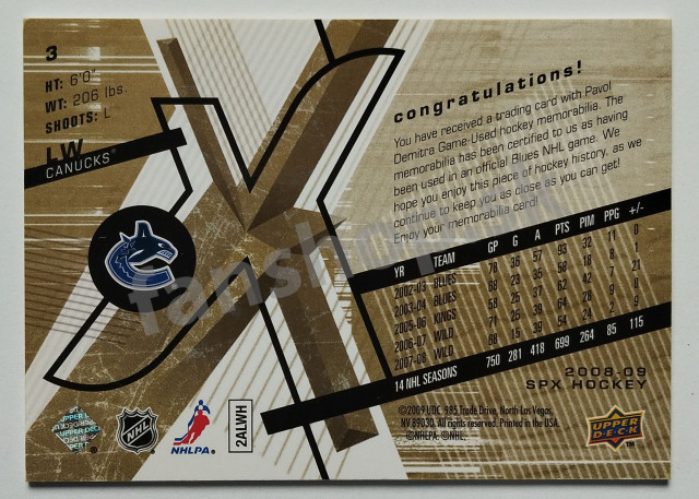 2008-09 SPx Spectrum #3 Pavol Demitra SN 02/25