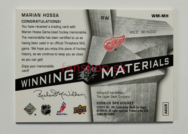 2008-09 SPx Winning Materials #WM-MH Marián Hossa