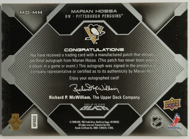 2008-09 UD Black Marks of Obsidian Autographs Patches #MO-MH Marián Hossa SN 20/35