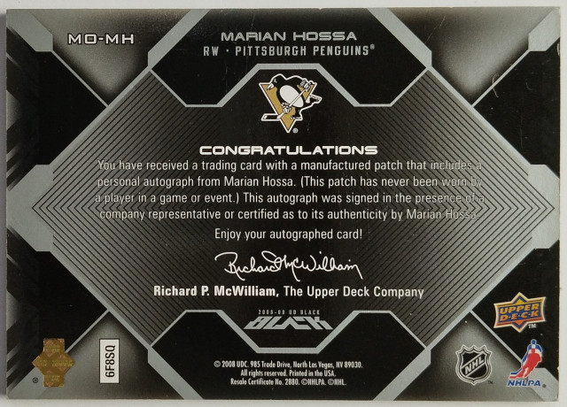 2008-09 UD Black Marks of Obsidian Autographs Patches #MO-MH Marián Hossa SN 35/35