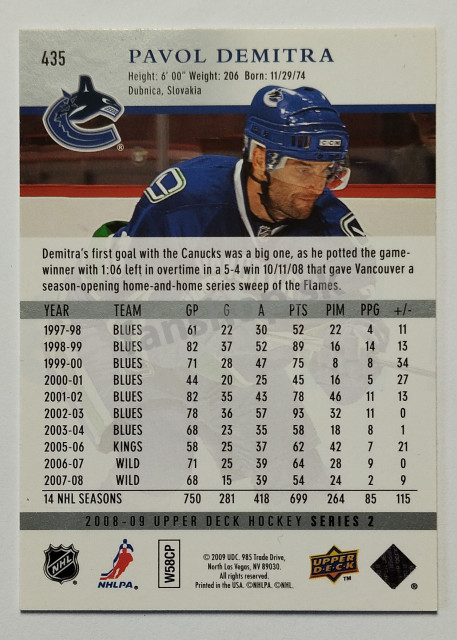 2008-09 Upper Deck #435 Pavol Demitra