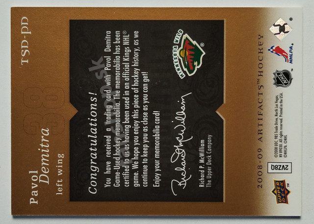 2008-09 Upper Deck Artifacts Tresured Swatches Dual #TSD-PD Pavol Demitra SN 154/199