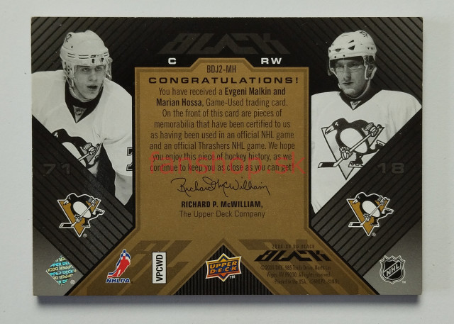 2008-09 Upper Deck Black Dual Player Jerseys Gold #BDJ2-MH Hossa / Malkin SN 10/25