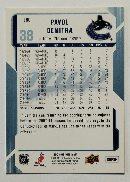 2008-09 Upper Deck MVP #280 Pavol Demitra