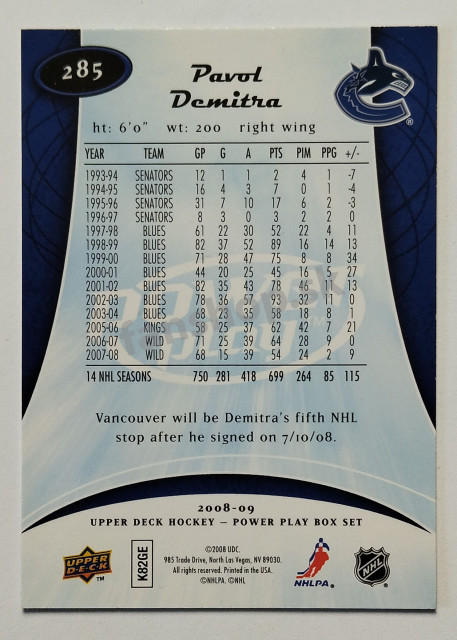 2008-09 Upper Deck Power Play Box Set #285 Pavol Demitra