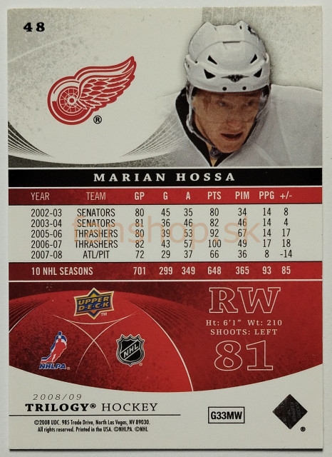 2008-09 Upper Deck Trilogy #48 Marián Hossa