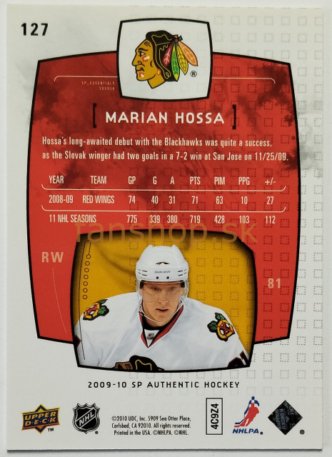 2009-10 SP Authentic #127 Marián Hossa SN 0204/1999