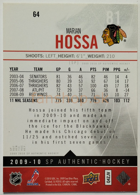 2009-10 SP Authentic #64 Marián Hossa