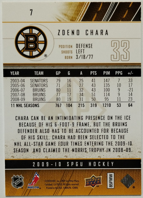 2009-10 SP Game Used Gold #7 Zdeno Chára SN 003/100