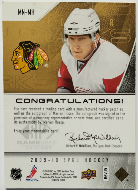 2009-10 SP Game Used Marks of a Nation #MN-MH Marián Hossa SN 34/50