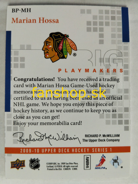 2009-10 Upper Deck Big Playmakers #BP-MH Marián Hossa SN 09/75