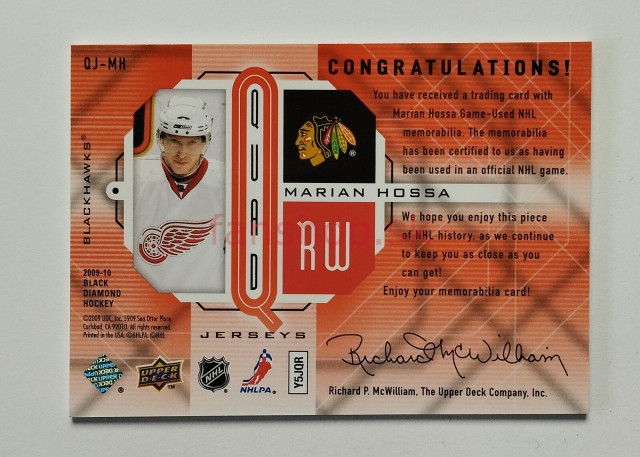 2009-10 Upper Deck Black Diamond Jerseys Quad Onyx #QJ-MH Marián Hossa SN 12/50