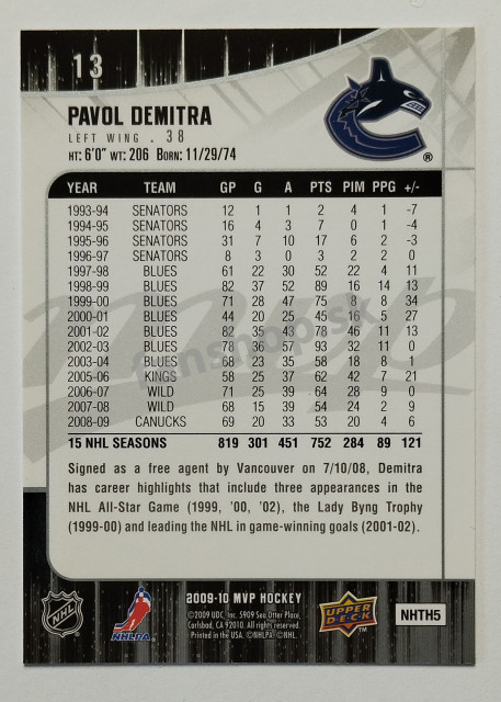 2009-10 Upper Deck MVP #13 Pavol Demitra