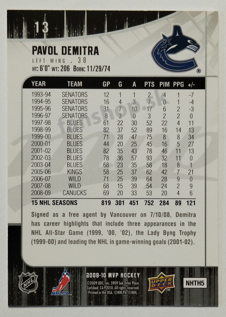 2009-10 Upper Deck MVP Super Script #13 Pavol Demitra SN 17/25