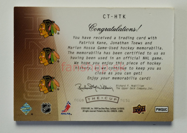 2009-10 Upper Deck The Cup Trios Patches #CT-HTK Hossa / Kane / Toews SN 01/10