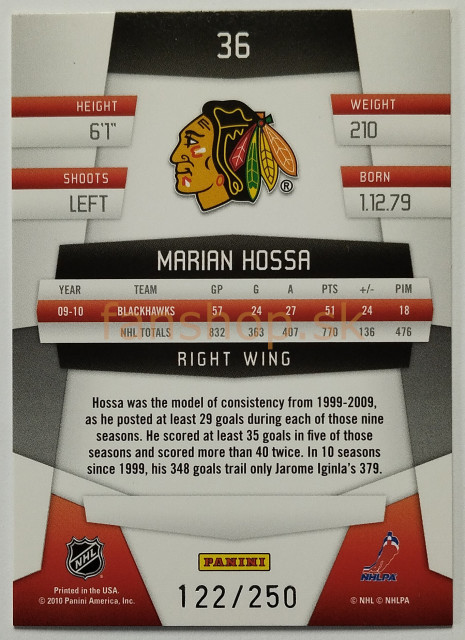 2010-11 Panini Certified Mirror Red #36 Marián Hossa SN 122/250