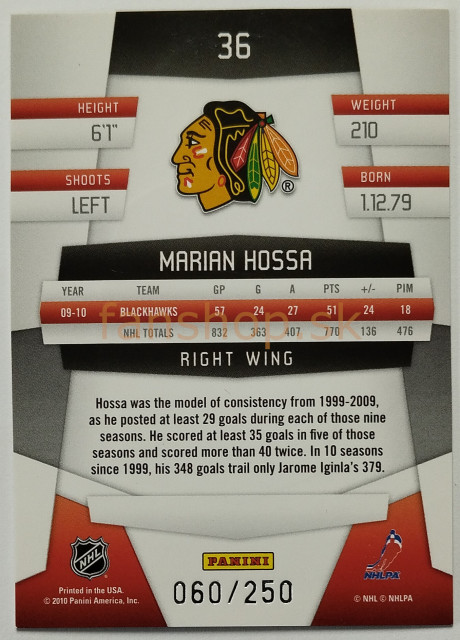 2010-11 Panini Certified Platinum Blue #36 Marián Hossa SN 060/250