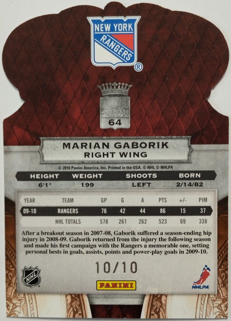 2010-11 Panini Crown Royale Ice Blue #64 Marián Gáborík SN 10/10