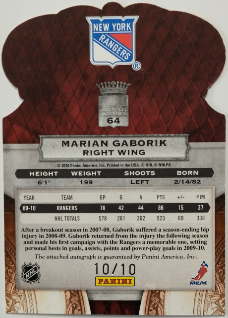 2010-11 Panini Crown Royale Premiere Date Signature #64 Marián Gáborík SN 10/10