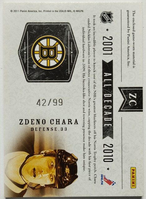2010-11 Panini Dominion All Decade Jerseys #ZC Zdeno Chára SN 42/99