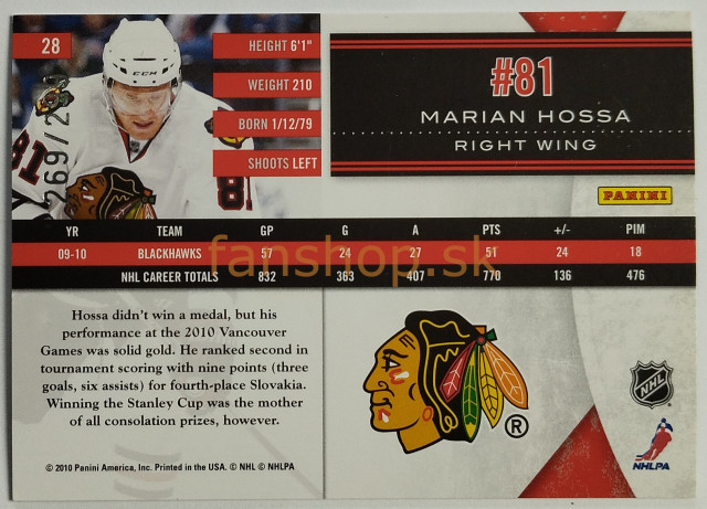 2010-11 Panini Limited #28 Marián Hossa SN 269/299