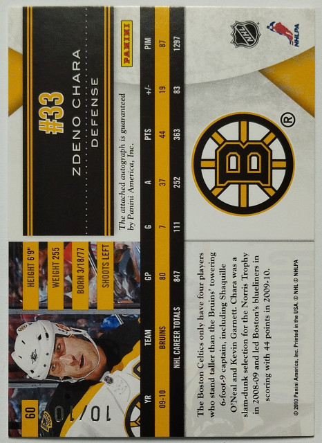 2010-11 Panini Limited Monikers Gold #60 Zdeno Chára SN 10/10