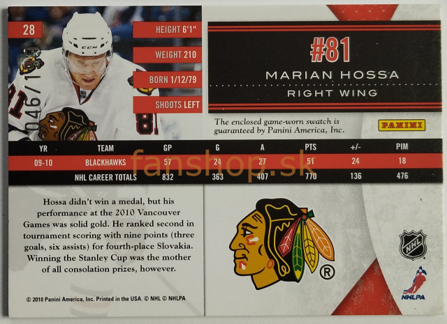 2010-11 Panini Limited Threads #28 Marián Hossa SN 046/199