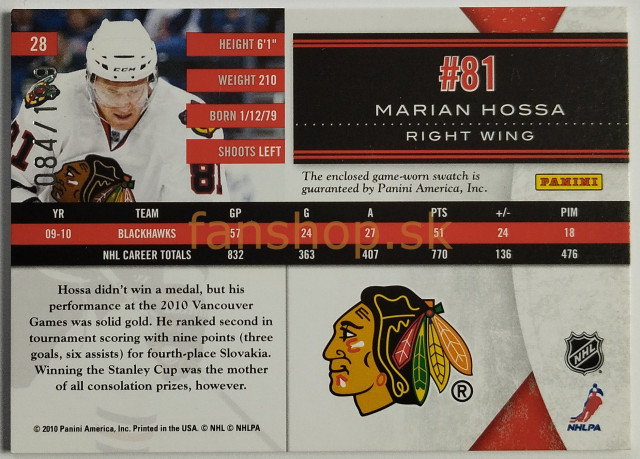 2010-11 Panini Limited Threads #28 Marián Hossa SN 084/199