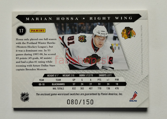 2010-11 Panini Luxury Suite Jerseys Prime #17 Marián Hossa SN 080/150