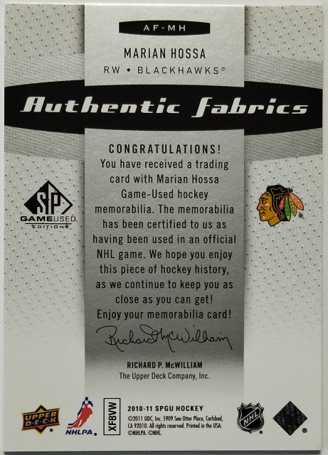 2010-11 SP Game Used Authentic Fabrics #AF-MH Marián Hossa