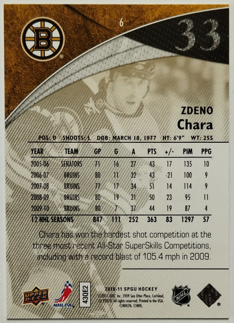 2010-11 SP Game Used Gold #6 Zdeno Chára SN 010/100