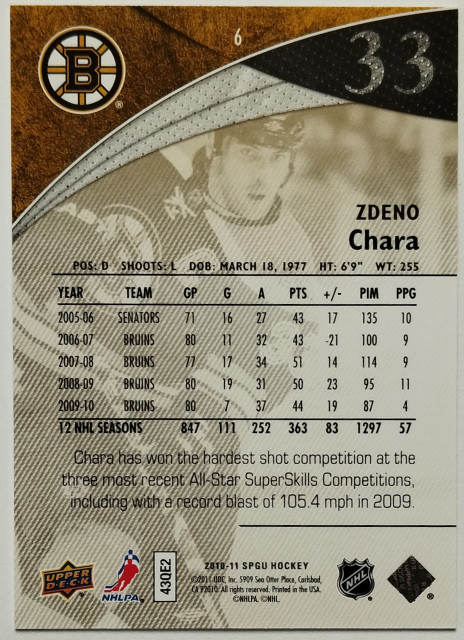 2010-11 SP Game Used Gold #6 Zdeno Chára SN 042/100