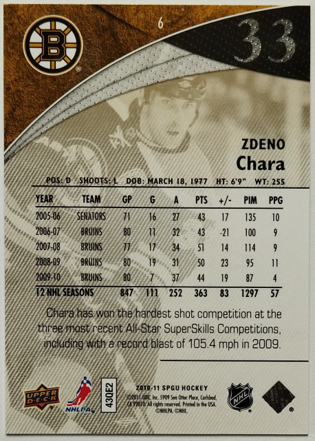 2010-11 SP Game Used Gold #6 Zdeno Chára SN 062/100