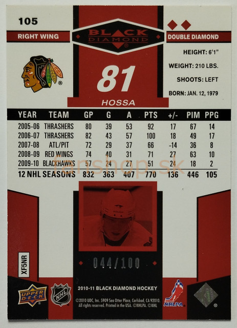 2010-11 Upper Deck Black Diamond Ruby #105 Marián Hossa SN 044/100
